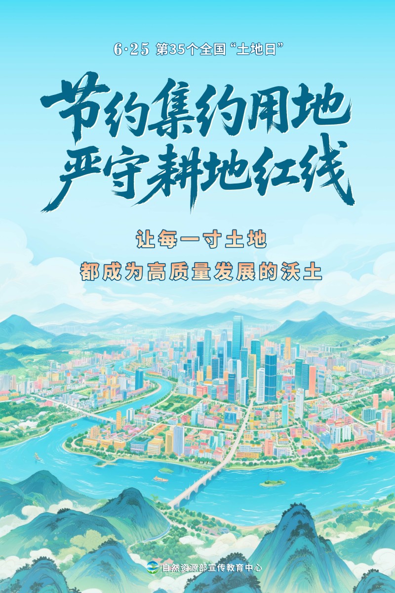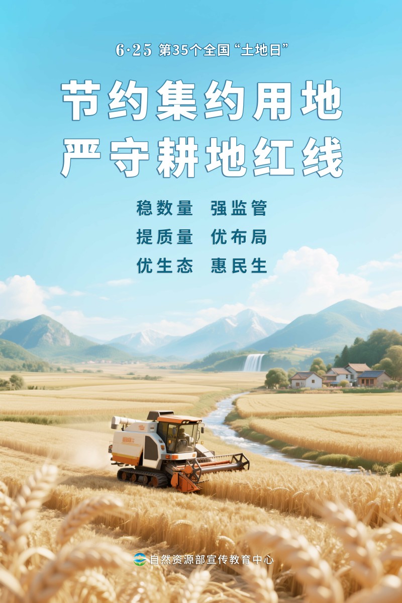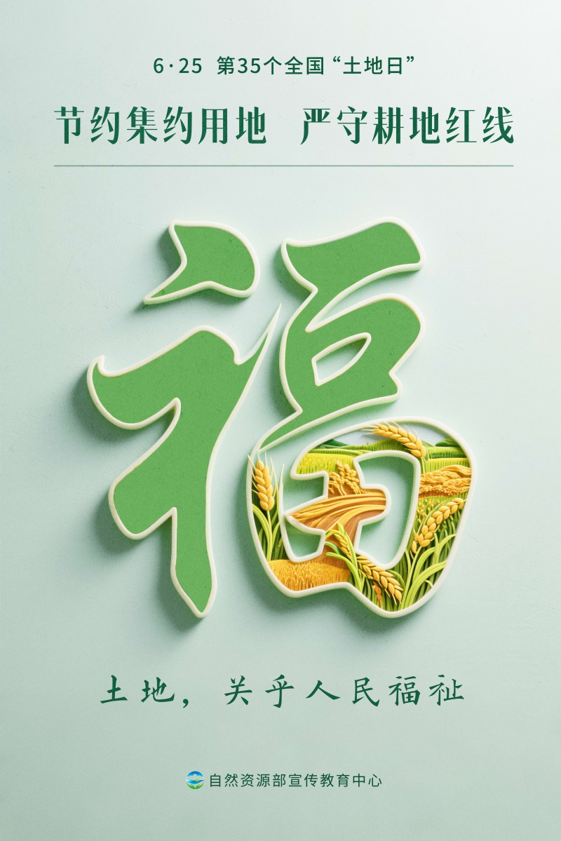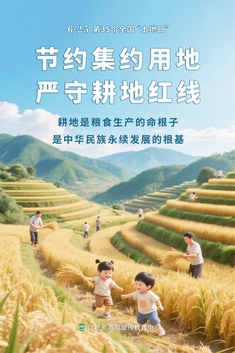 2025年6月25日是第35个全国“土地日”,宣传主题是“节约集约用地 严守耕地红线”。为方便大家开展“耕地保护进万村”等各类线上线下活动,自然资源部宣传教育中心策划制作了多套不同风格的宣传海报,欢迎各地下载使用。希望全社会树立保护耕地、节约用地的意识,像保护大熊猫一样保护耕地,让每一寸土地都成为高质量发展的沃土。