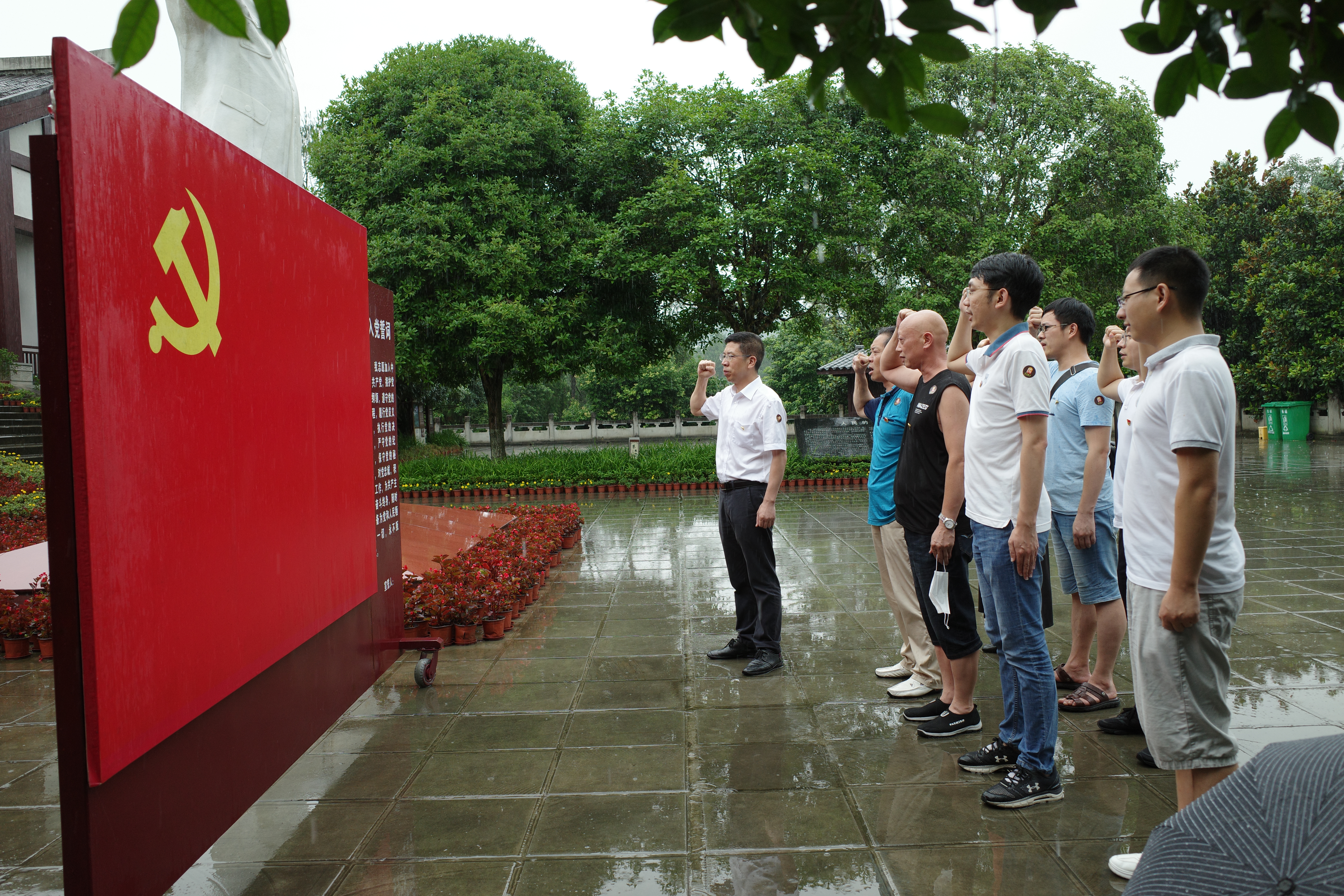 值此中国共产党成立99周年之际,为深入学习贯彻习近平新时代中国特色社会主义思想,回顾党的光辉历程和丰功伟绩,弘扬党的优良传统,坚定理想信念、树牢群众观点、增强服务意识、改进工作作风,加强党员干部政治历练和党性锻炼,进一步教育引导广大党员干部自觉践行党的初心和使命。7月10日,遂宁经济技术开发区自然资源和规划分局(中心)联合党支部赴南充市仪陇县朱德故里开展“追忆红色历史、缅怀革命先烈”主题党日活动,支部全体党员、中层干部和分局第二季度自然资源和规划领域“闪亮之星”获评人员参加了活动。活动期间,支部全体党员参观了朱德同志故居和故居纪念馆,在支部书记庹发兵的领誓下重温了入党誓词,深刻缅怀了党的光辉历程和丰功伟绩。