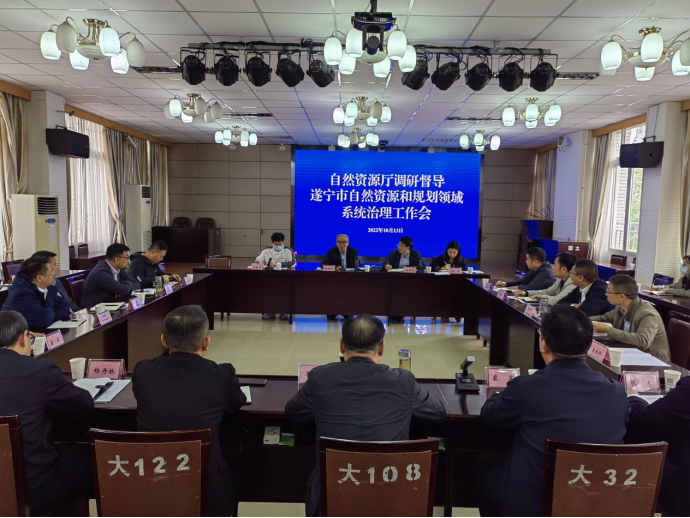 10月11日至10月13日,自然资源厅一级巡视员隆爱军同志带队对遂宁市自然资源和规划领域突出问题系统治理工作进行督导检查。遂宁市自然资源和规划局党委书记、局长李斌及相关分管领导分时段陪同调研。