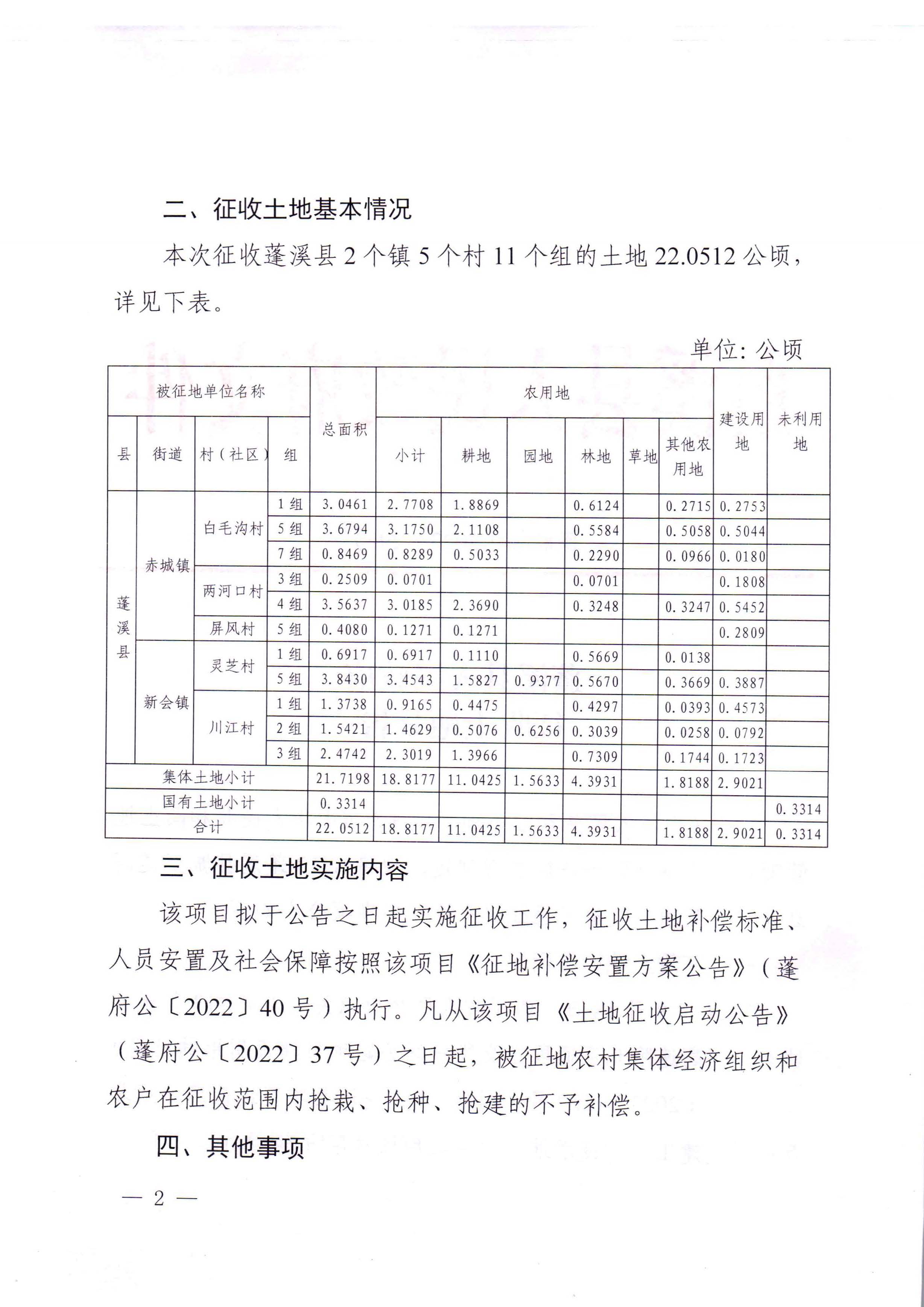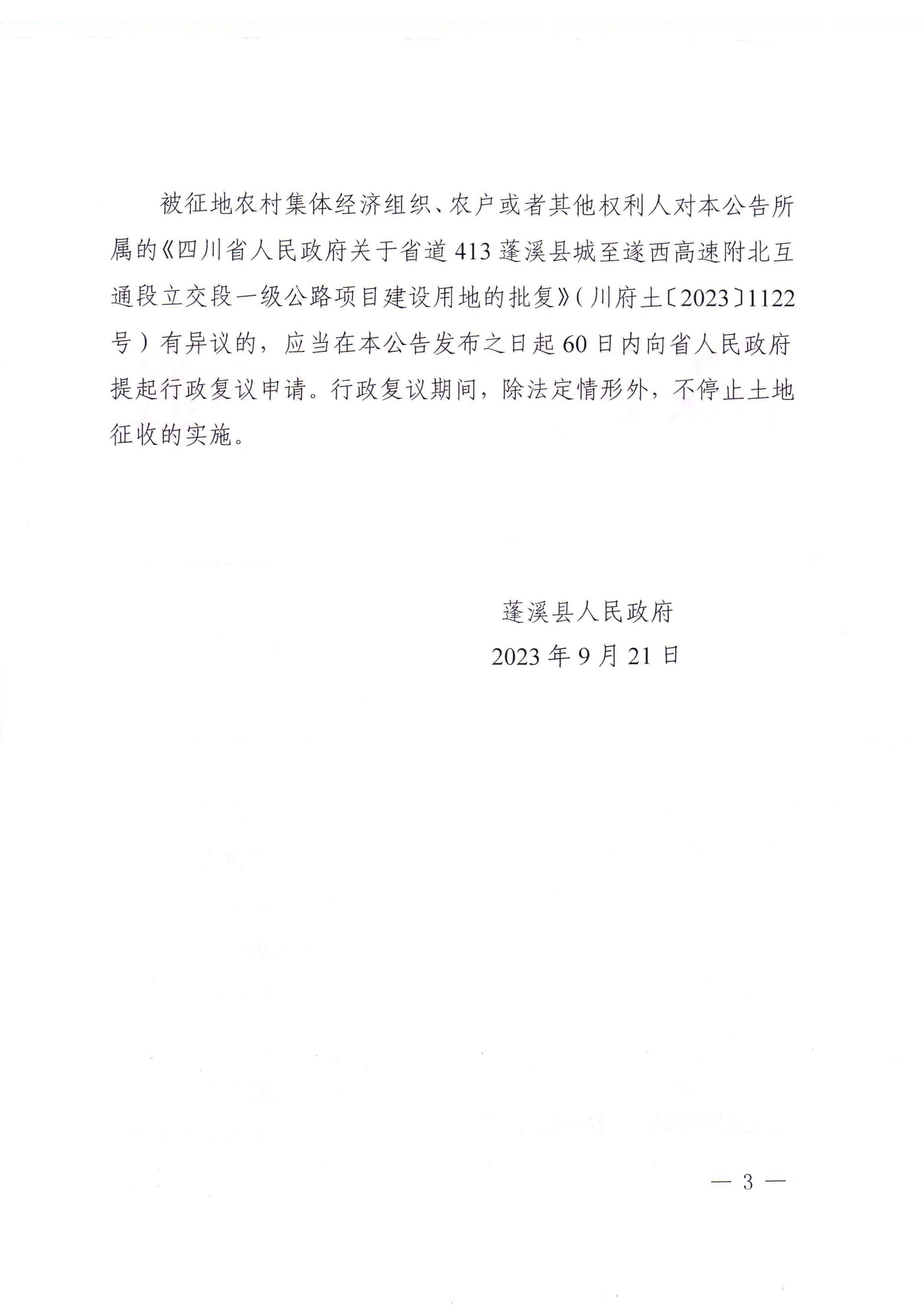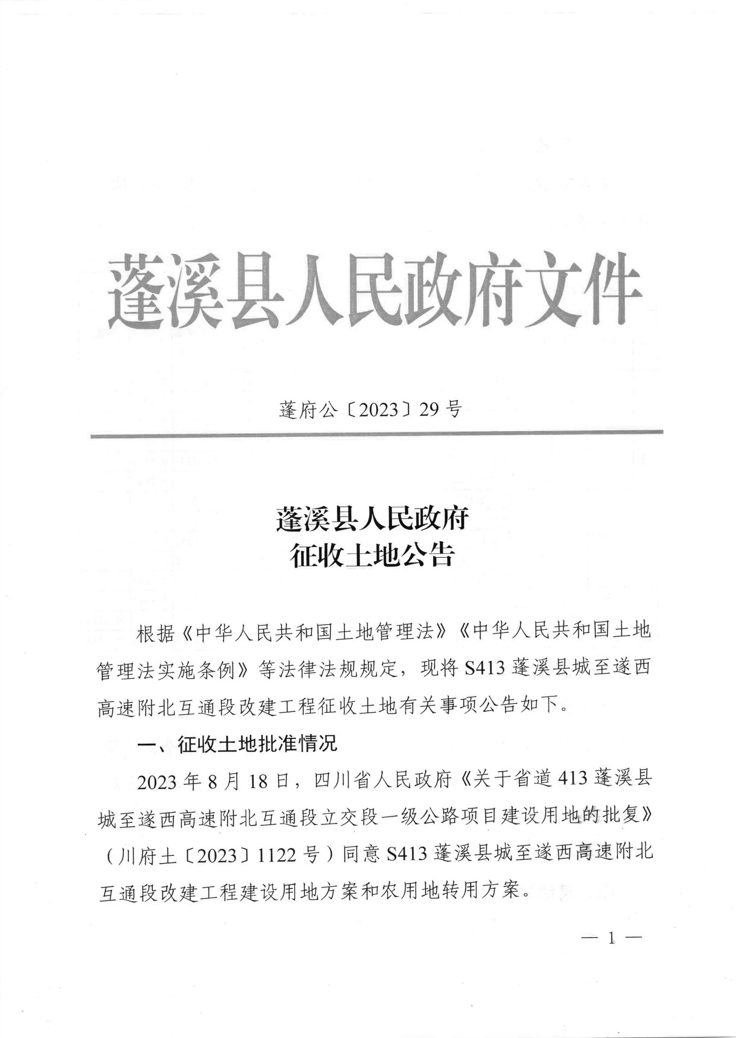 蓬溪县人民政府征收土地公告(蓬府公〔2023〕29号)