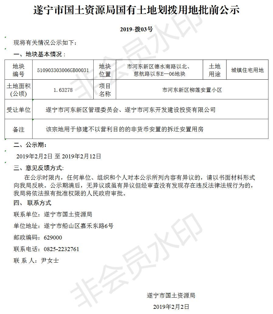 遂宁市国土资源局国有土地划拨用地批前公示(2019-拨03号)