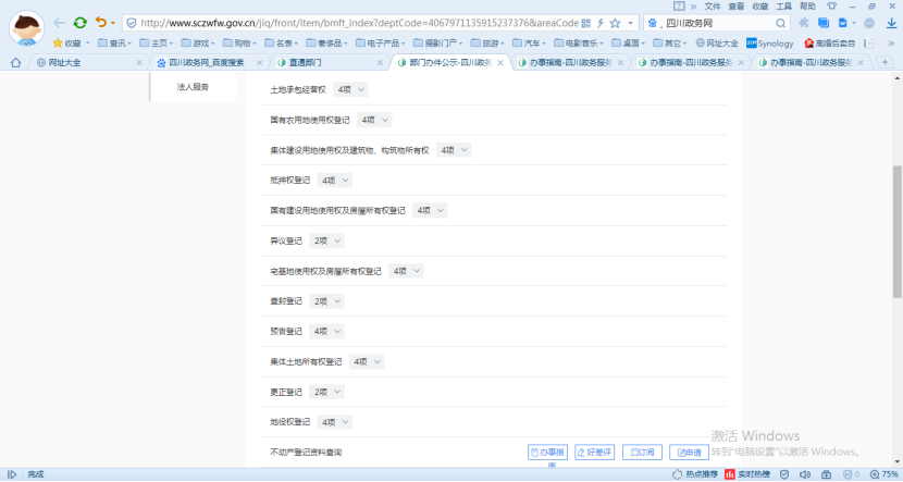 四川政务服务网公示各类登记办事流程和所需申请材料截图