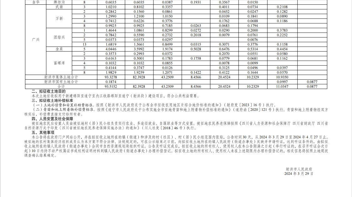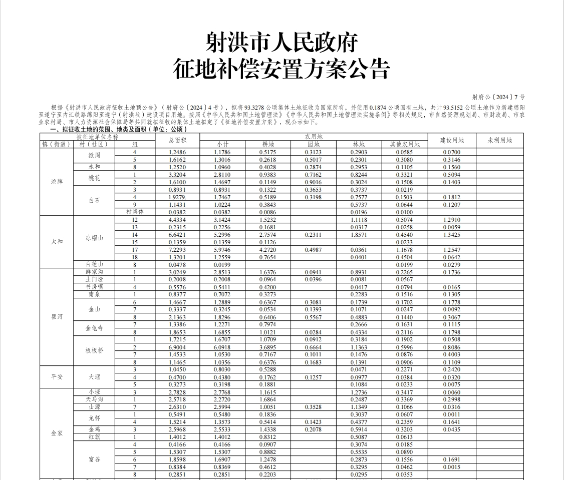 射洪市人民政府征地补偿安置方案公告(射府公〔2024〕7号)