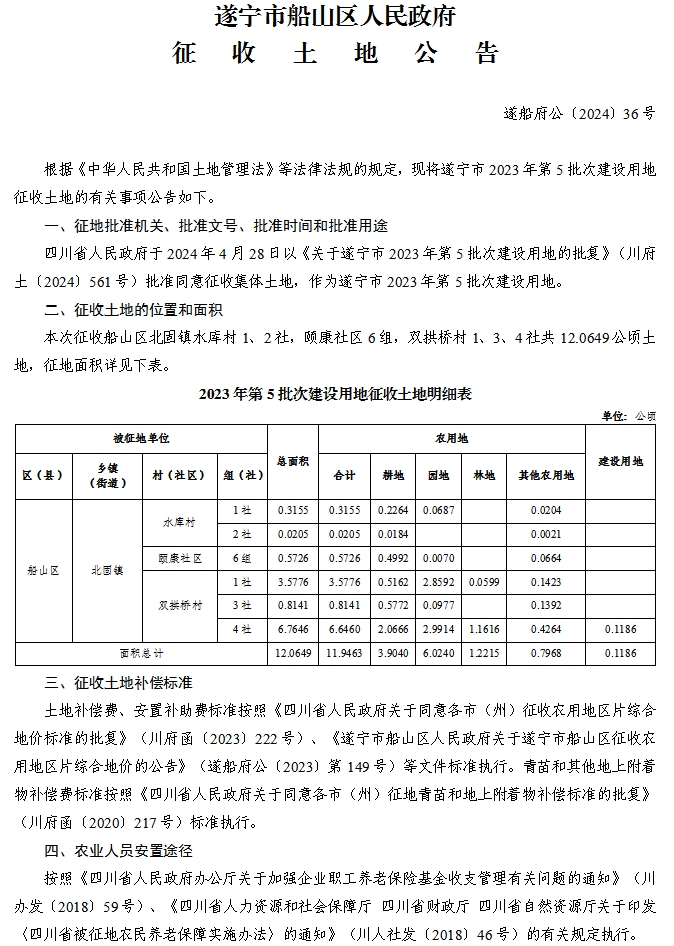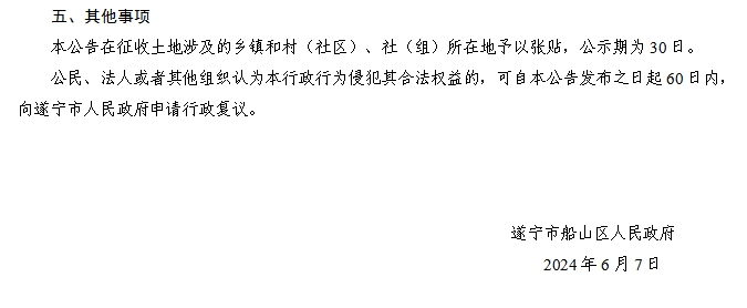 遂宁市船山区人民政府征收土地公告(遂船府公〔2024〕36号)