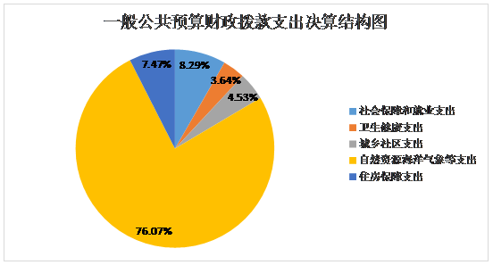 2020年一般公共预算财政拨款支出163.87万元,主要用于以下方面:社会保障和就业(类)支出13.58万元,占8.29%;卫生健康(类)支出5.97万元,占3.64%;城乡社区(类)支出7.43万元,占4.53%;自然资源海洋气象等(类)支出124.65万元,占76.07%;住房保障(类)支出12.24万元,占7.47%。