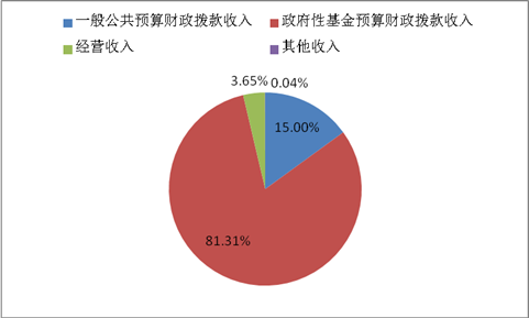 2020年本年收入合计30452.39万元,其中:一般公共预算财政拨款收入4569万元,占15%;政府性基金预算财政拨款收入24760.19万元,占81.31%;上级补助收入0万元,占0%;事业收入0万元,占0%;经营收入1110.82万元,占3.65%;附属单位上缴收入0万元,占0%;其他收入12.36万元,占0.04*%。