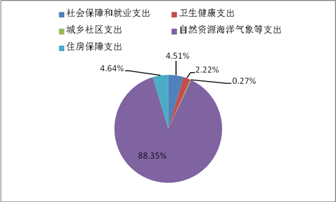 2020年一般公共预算财政拨款支出4732.69万元,主要用于以下方面:社会保障和就业支出213.29万元,占4.51%;卫生健康支出105.14万元,占2.22%;住房保障支出219.61万元,占4.64%;城乡社区支出12.65万元,占0.27%;自然资源海洋气象等支出4177.61万元,占88.27%;灾害防治及应急管理支出4万元,占0.08%;其他支出0.4万元,占0.01%。
