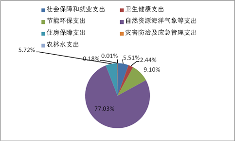 2021年一般公共预算财政拨款支出2724.2万元,主要用于以下方面: 节能环保支出(类)支出248.03万元,占9.1%;自然资源海洋气象等支出(类)2098.41万元,占77.03%;社会保障和就业(类)支出150.16万元,占5.51%;卫生健康支出66.56万元,占2.44%;住房保障支出155.73万元,占5.72%;灾害防治及应急管理支出(类)支出5万元,占0.18%;农林水支出支出(类)支出0.3万元,占0.01%。