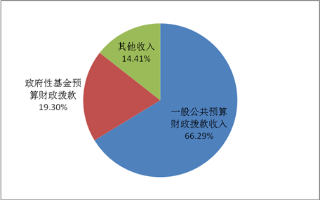 2021年本年收入合计4057.78万元,其中:一般公共预算财政拨款收入2689.96万元,占66.29%;政府性基金预算财政拨款收入782.99万元,占19.3%;国有资本经营预算财政拨款收入00万元,占0%;上级补助收入0万元,占0%;事业收入0万元,占0%;经营收入0万元,占0%;附属单位上缴收入0万元,占0%;其他收入584.82万元,占14.41%。
