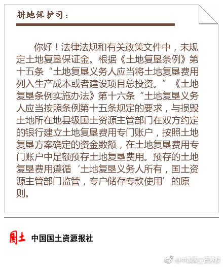 【专家答疑】咨询:按照《土地复垦条例实施办法》规定,土地复垦保证金应由土地复垦义务人与损毁土地所在地县级国土资源主管部门在双方约定的银行建立土地复垦费用专门账户。请问,如果国土部门要求把保证金存入指定的账户,这样合理吗?如果双方在确认哪家银行设专户上无法达成一致,该怎么办? ????
