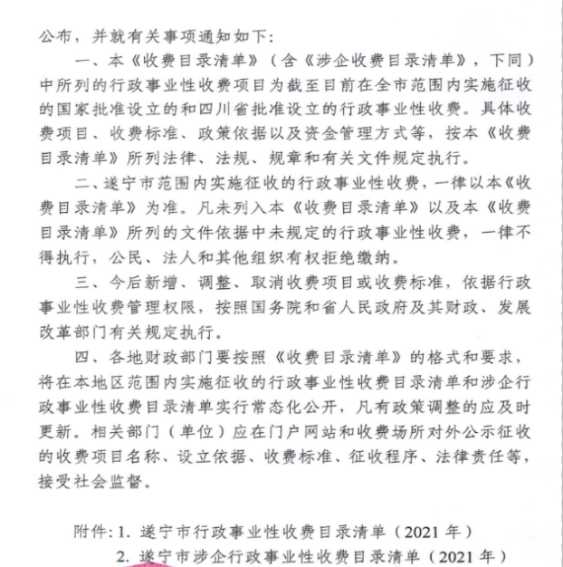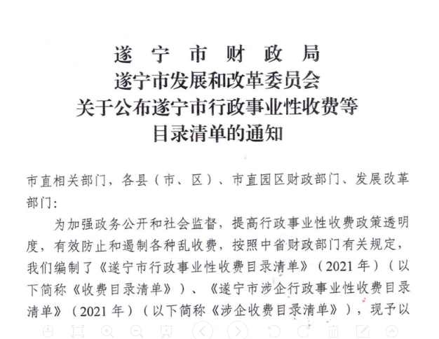 遂宁市涉企行政事业性收费目录清单(2021年)