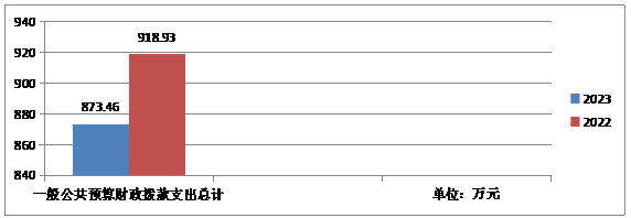 2023年度一般公共预算支出决算数为873.46,完成预算92.96%。其中: