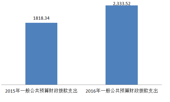 遂宁市国土资源局2016年度一般公共预算财政拨款支出2333.52万元,占本年支出合计的5.37%。与2015年相比,一般公共预算财政拨款增加515.18万元,增长28.33%。