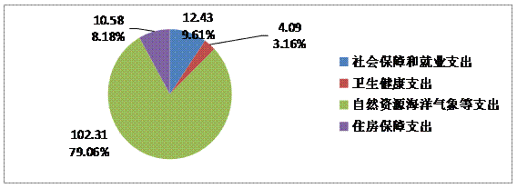 2023年度一般公共预算财政拨款支出129.42万元,主要用于以下方面:社会保障和就业支出12.43万元,占9.61%;卫生健康支出4.09万元,占3.16%;自然资源海洋气象等支出102.31万元,占79.06%;住房保障支出10.58万元,占8.18%。