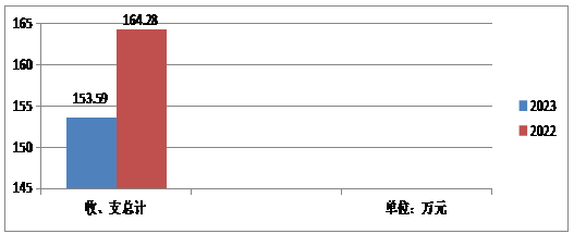 2023年度收、支总计均为153.59万元。与2022年度相比,收、支总计各减少10.69万元,下降6.51%。主要变动原因是2023年度未清算2022年目标奖,因此人员经费减少12.36万元。