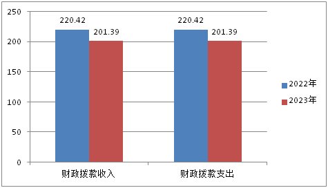 2023年度财政拨款收、支总计均为201.39万元。与2022年度相比,财政拨款收、支总计各与2022年度相比减少19.03万元,下降8.63%。主要变动原因是2023年无基金项目卫片执法相关费用支出及人员相关经费减少。