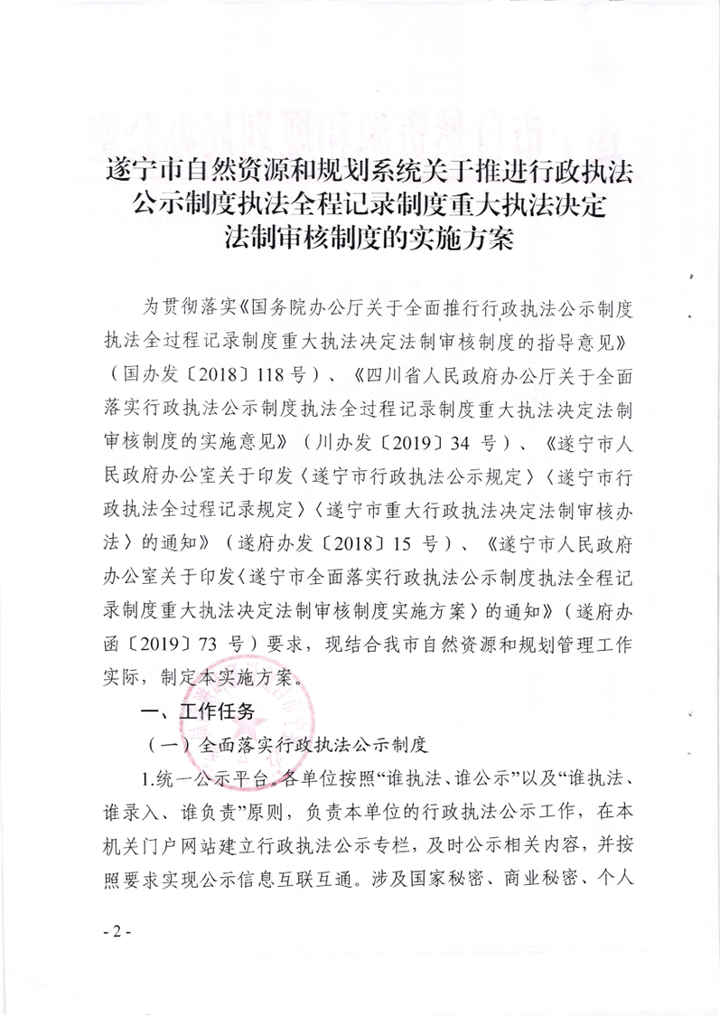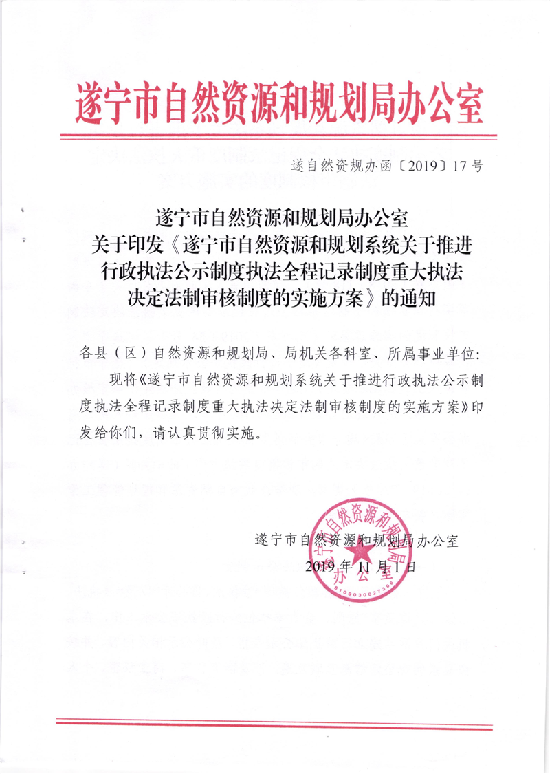 关于印发《遂宁市自然资源和规划系统关于推进行政执法公示制度执法全程记录制度重大执法决定法制审核制度的实施方案》的通知