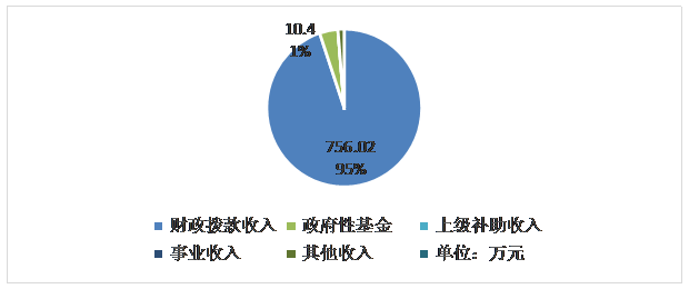 2020年本年收入合计796.92万元,其中:一般公共预算财政拨款收入756.02万元,占94.87%;政府性基金预算财政拨款收入30.50万元,占3.83%;上级补助收入0万元,占0%;事业收入0万元,占0%;经营收入0万元,占0%;附属单位上缴收入0万元,占0%%;其他收入10.40万元,占1.31%。