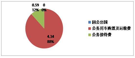 2020年“三公”经费财政拨款支出决算中,因公出国(境)费支出决算0万元,占0%;公务用车购置及运行维护费支出决算4.34万元,占88.03%;公务接待费支出决算0.59万元,占11.97%。具体情况如下: