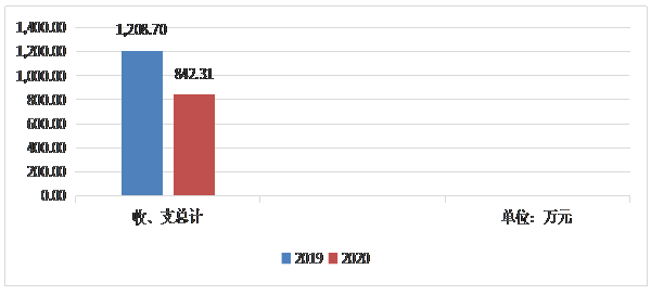 2020年度收、支总计842.31万元。与2019年相比,收、支总计各减少366.39万元,减少30.31%。主要变动原因是去年有不动产档案管理项目经费,今年该项目经费减少。