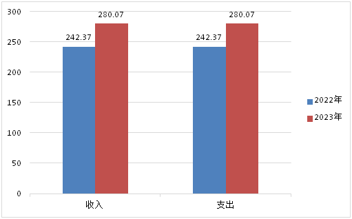2023年度收、支总计均为280.07万元。与2022年度相比,收、支总计各增加37.7万元,增长15.55%。主要变动原因是人员工资、社保费用增加。
