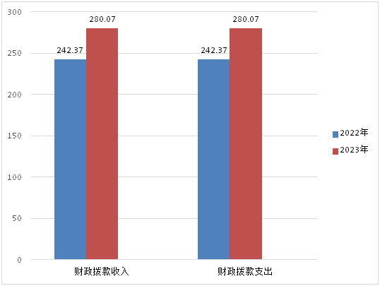 2023年度财政拨款收、支总计均为280.07万元。与2022年度相比,财政拨款收、支总计各增加37.7万元,增长15.55%。主要变动原因是人员工资、社保费用增加。