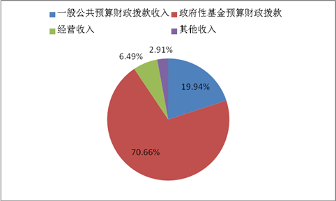 2021年本年收入合计20455.34万元,其中:一般公共预算财政拨款收入4078.89万元,占19.94%;政府性基金预算财政拨款收入14453.96万元,占70.66%;经营收入1327.01万元,占6.49%;其他收入595.48万元,占2.91%。